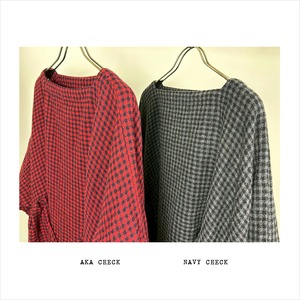 ウールガーゼチェックギャザーリボンブラウス