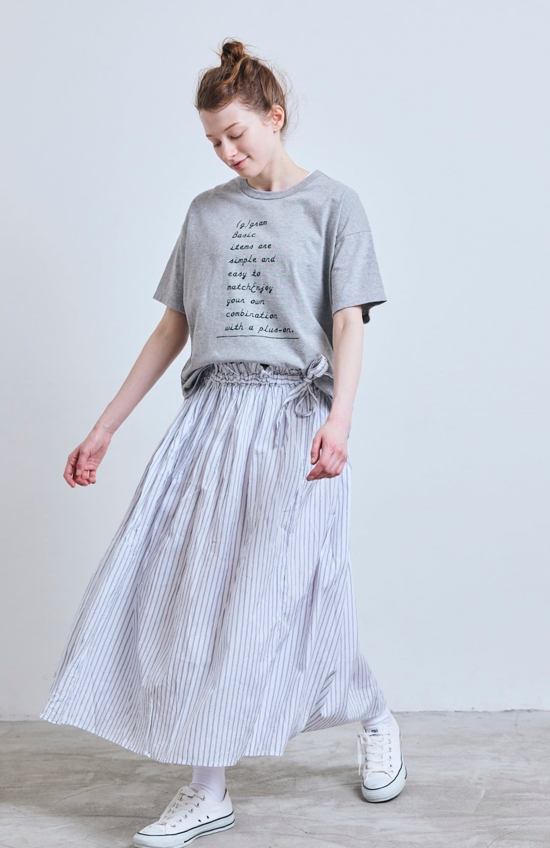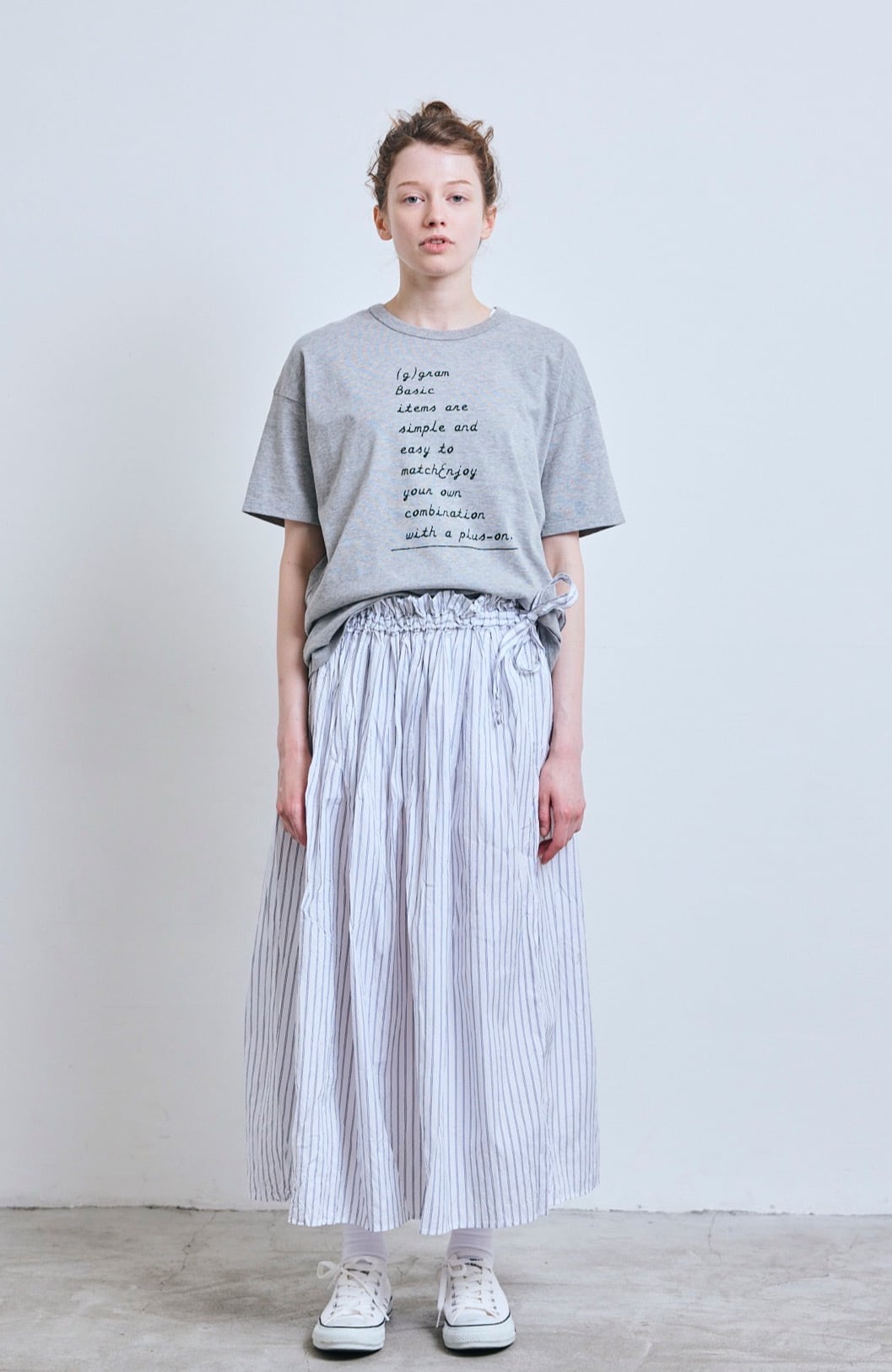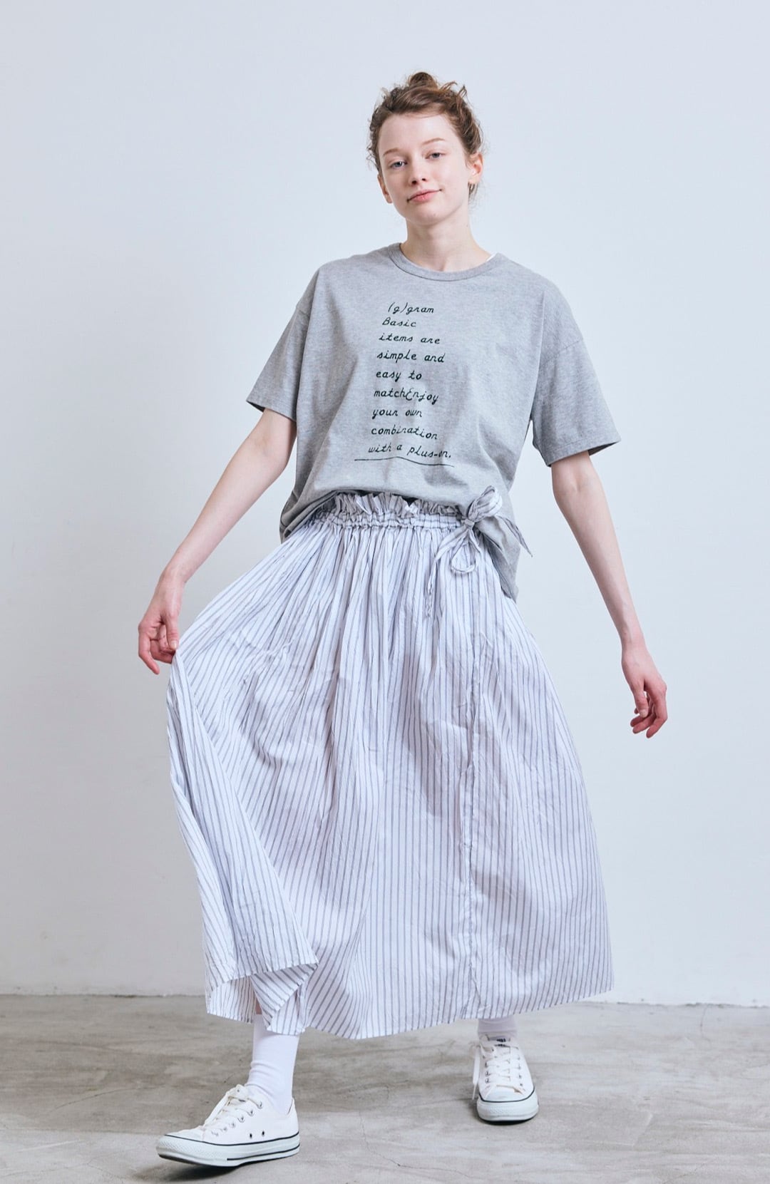 g_426 STRIPE SIDE RIBBON GATHER SKIRT