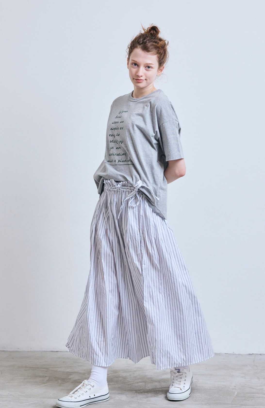 ストライプサイドリボンギャザースカート