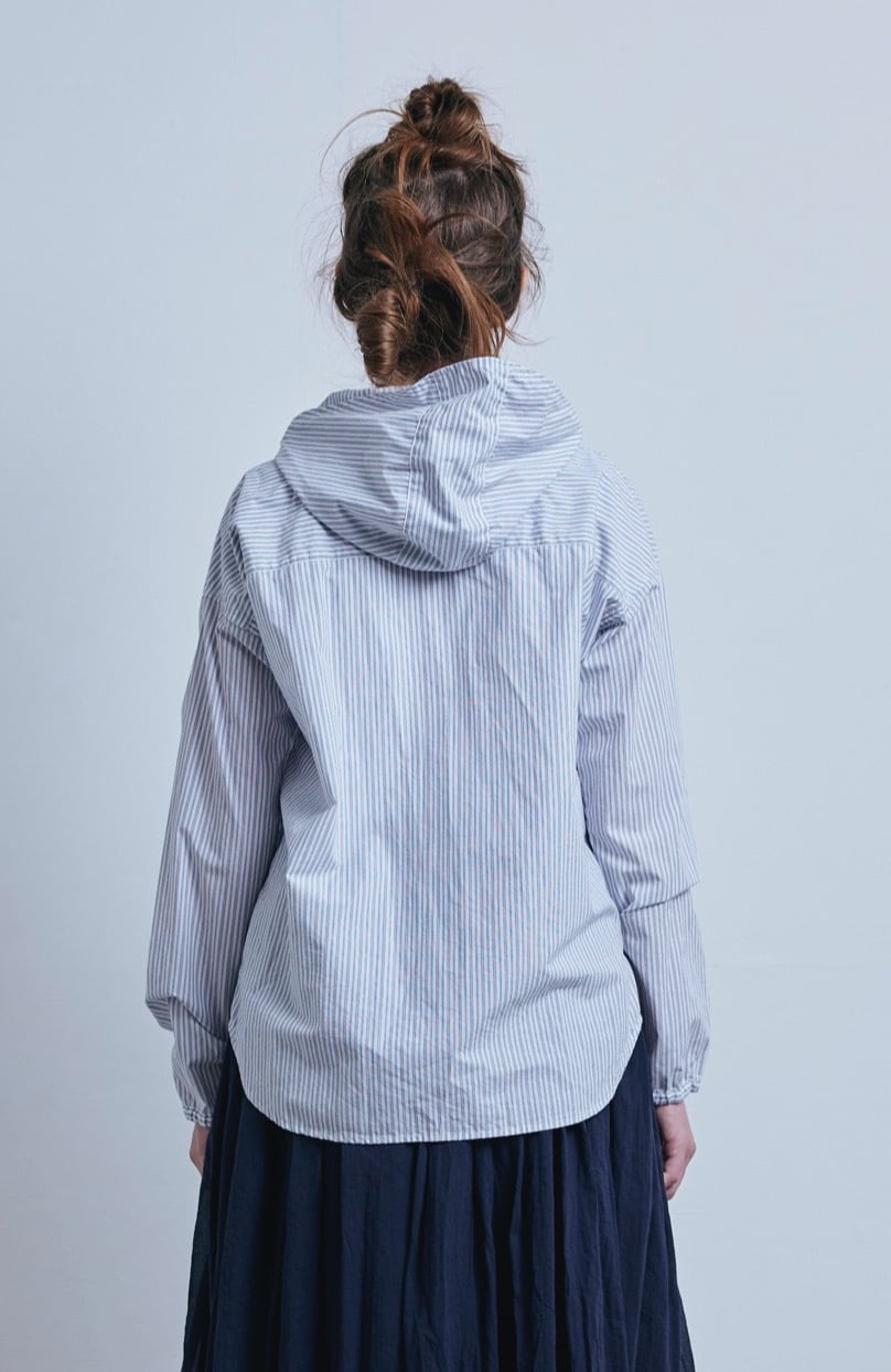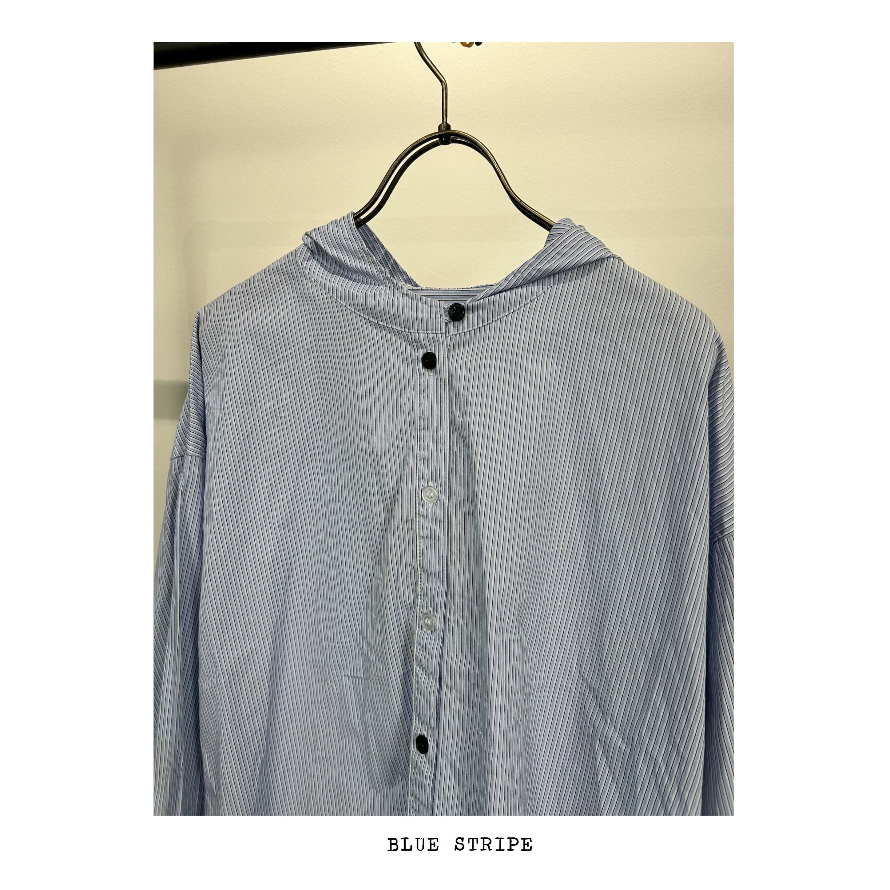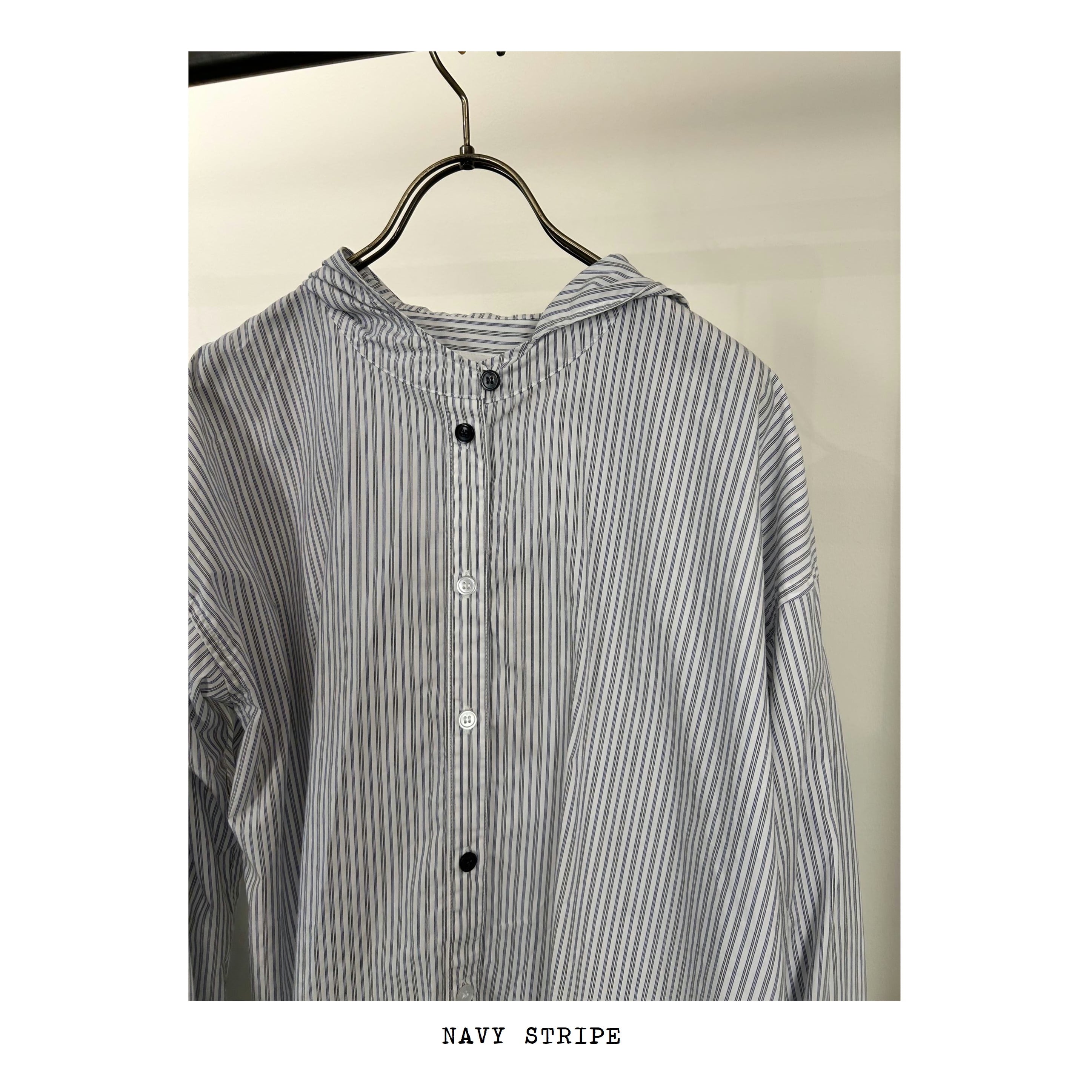ストライプフードシャツ