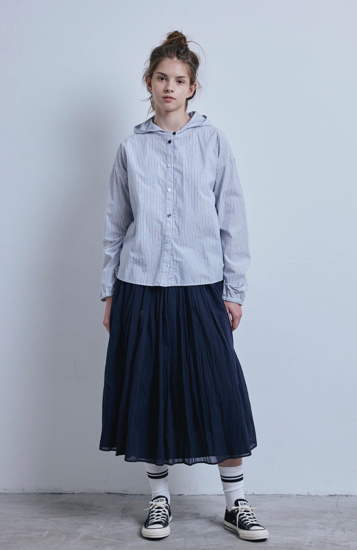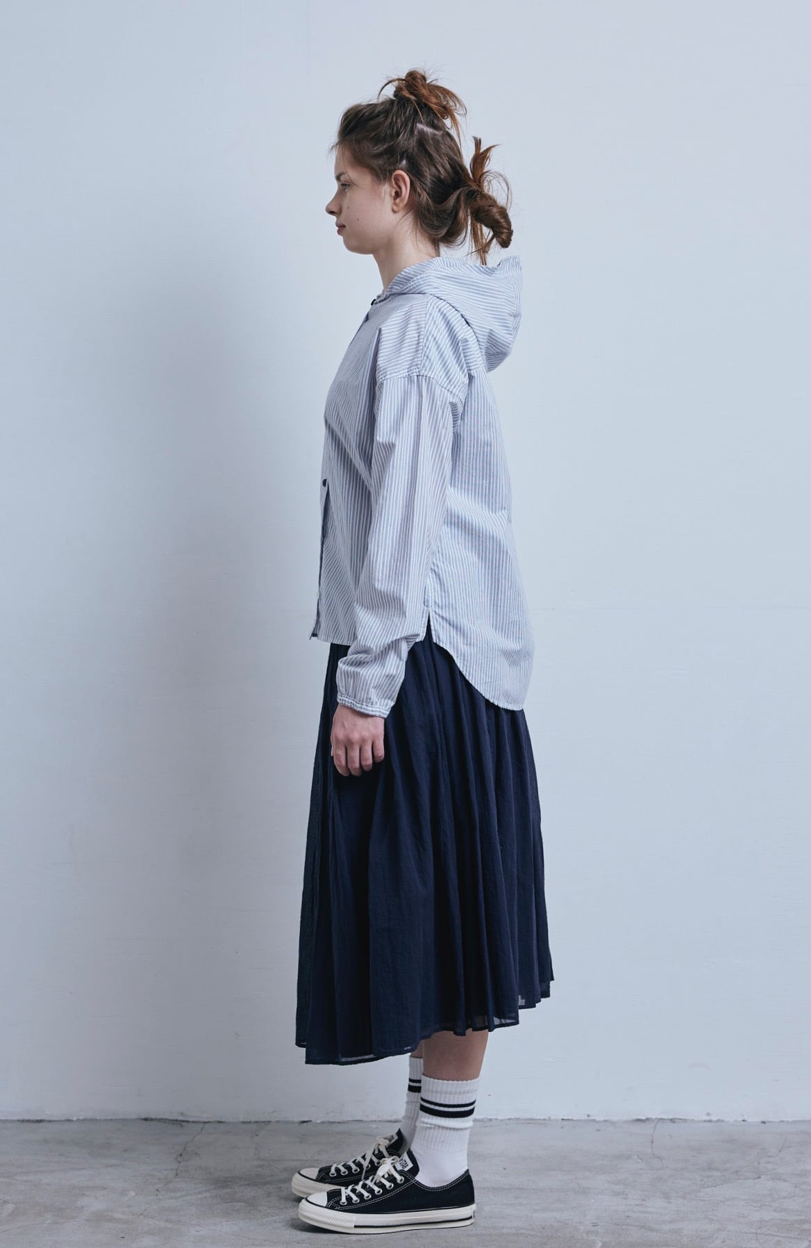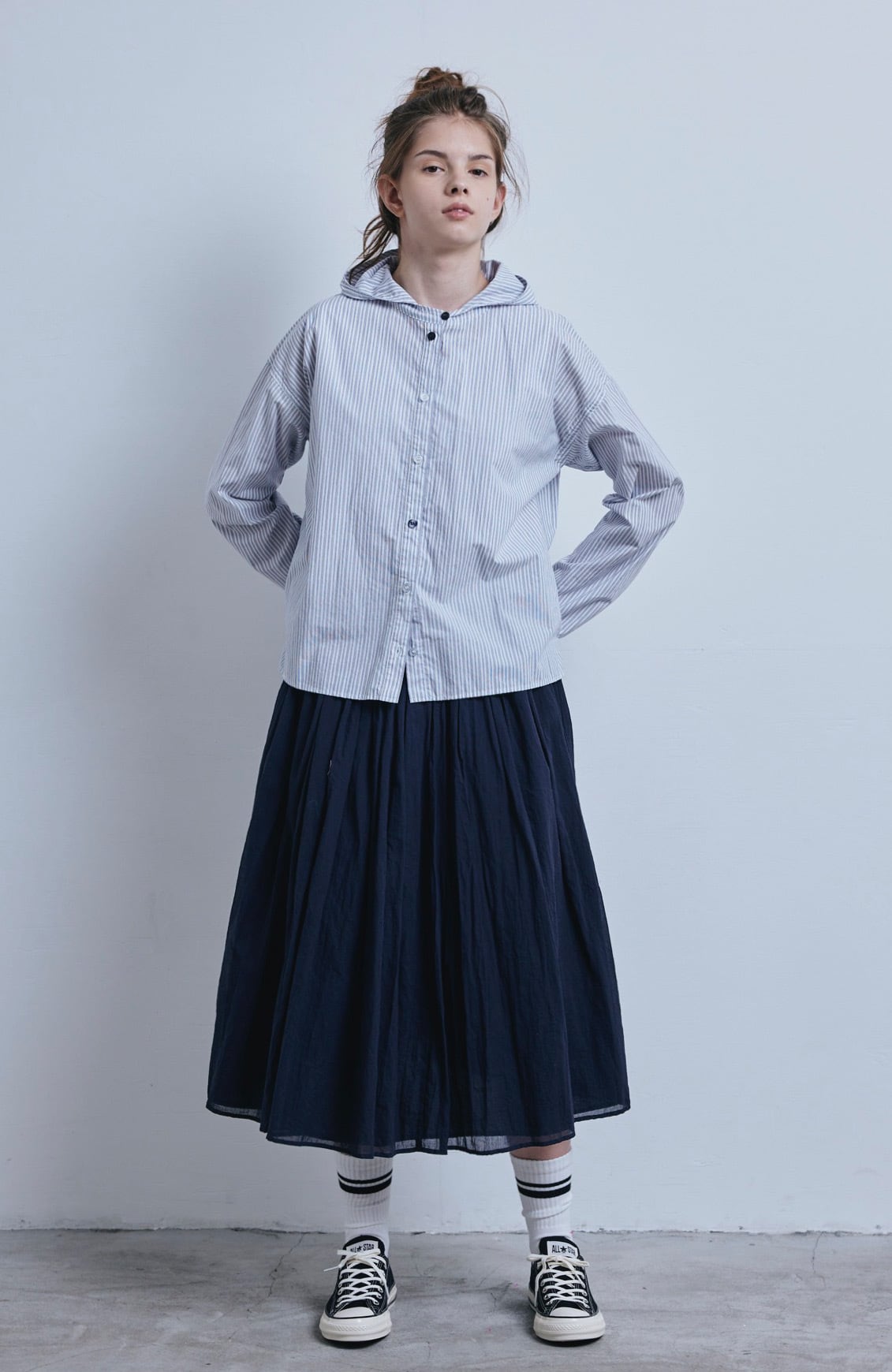 ストライプフードシャツ